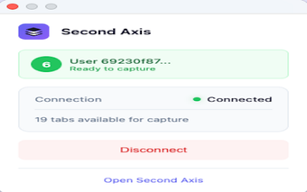 Second Axis เป็นส่วนขยายของ Chrome ที่ออกแบบมาเพื่อการสร้างต้นแบบที่มีความแม่นยำในระดับพิกเซล ช่วยให้ผู้ใช้สามารถจับภาพหน้าเว็บได้อย่างแม่นยำ เครื่องมือนี้ช่วยให้ผู้ใช้สามารถท่องเว็บใด ๆ และจับภาพเลย์เอาต์ สไตล์ และทรัพย์สินได้ทันทีด้วยการคลิกเพียงครั้งเดียว ฟีเจอร์นี้มีประโยชน์โดยเฉพาะสำหรับนักออกแบบที่ต้องการแรงบันดาลใจหรือจำเป็นต้องทำซ้ำรูปแบบ UI ที่มีอยู่ หน้าเว็บที่ถูกจับภาพจะถูกผสานเข้ากับ Second Axis Composer อย่างราบรื่น ทำให้การแก้ไขที่ขับเคลื่อนด้วย AI เป็นไปอย่างมีประสิทธิภาพ